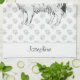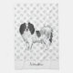 Cute Black And White Phalène Dog With Custom Name Tea Towel