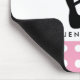 Mouse pad with a black illustration of a ballet dancers slippers and her lower legs which are transparent allowing the colour of the background to show through. Ballerina is standing on her toes, en pointe.