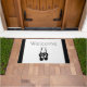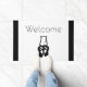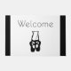 Welcome door mat with a black illustration of a ballet dancers slippers and her legs. Ballerina is standing on her toes, en pointe.
