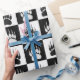 Cute Black Bear Paw Print Chequerboard Pattern Wrapping Paper