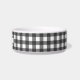 Cute rustic custom pet dog or cat bowl features farmhouse buffalo plaid check patterned background in black and white colours with double border.