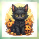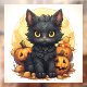 Cute Black Cat and Jack-o-Lanterns