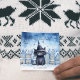 Send warm holiday wishes with this adorable Christmas card featuring a whimsical black cat in a starry wizard hat, set against a charming snowy village backdrop. The enchanting winter scene, paired with elegant script that reads "Merry Christmas!", makes this the perfect greeting for cat lovers and festive spirits alike.