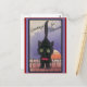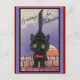 This cute black cat has big green eyes! Kitty brings Halloween greetings. Vintage art. Cool Halloween cards are fully customisable. You can add your own text on the front or inside (or, on postcards, on the back). Buy one or a dozen, and don't forget the matching postage!