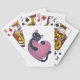 Cute Black Cat Holding onto Big Heart Playing Cards