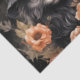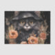 Tissue paper with a cute illustration. A black long-haired cat wearing a black witch's hat. It's ears poking out. Surrounded by orange and brown autumn flowers. Perfect for cat lovers.