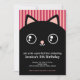 Birthday invitation for kids featuring a cute black kitty face with big round shiny eyes. The background is striped. Easy to customise as it is designed as a template. Also perfect for halloween party invitation.
