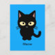 Cute black cat meow cartoon postcard