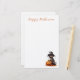Cute Black Cat wearing a Witches Hat with Pumpkin and Autumn Leaves Halloween Stationery