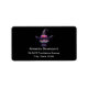 Address labels with a fun Halloween themed illustration for cat lovers. A big-eyed black cat wearing a large black witch's hat with a purplish pink belt around the brim.