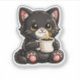 Cute Black Cat with Coffee