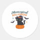 Cute Black Cat with Glowing Green Eyes on Pumpkin Classic Round Sticker