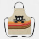Abstract retro style illustration with yellow, orange, red and brown stripes and black cute cat decoration on beige background for every cat and retro lover. It is easy to customise it by adding your name/monogram etc.