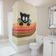 Abstract retro style illustration with yellow, orange, red and brown stripes and black cute cat decoration on beige background for every cat and retro lover. It is easy to customise it by adding your name/monogram etc.