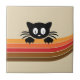 Cute black cat with retro stripes tile