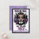 Bring spooky-cute vibes to your Halloween party or classroom celebration with this unique place card! 🕷️ Featuring a kawaii-inspired African American girl in a modern goth outfit, with oversized doll-like eyes, soft mascara details, and a playful-creepy expression. She’s framed by a heart of purple, lavender, and black wilted flowers with a whimsical spooky raven nearby. The design includes purple and black trim with a white spider web background, and the phrase “Trick or treat… but mostly trick” in bold gothic font. Perfect for Halloween tables, kids’ parties, or classroom candy gram 🎃👻