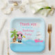 Cute Black Hair Pirate Girl in Pink Birthday Party Paper Plate