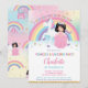 Cute Black Hair Princess Unicorn Rainbow Birthday Invitation
