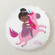 Cute Black Haired Girl Riding on a Unicorn Round Cushion