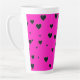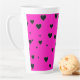 Cute Black Hearts Pink Latte Mug features assorted black hearts against a Hot Pink background. This makes a perfect latte mug or a big coffee mug for your caffeine needs.