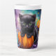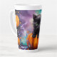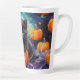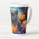 Cute Black Kitten Pumpkins N Ribbons Halloween Latte Mug