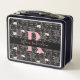 Cute Black Pink Kitty Cats Monogram Metal Lunch Box. Personalise by adding your name, initial and Enjoy!