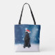 Cute Black Pug Dog Christmas Santa Hat Snow Stars Tote Bag