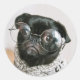 Cute Black Pug with Glasses Dog Photo Classic Round Sticker