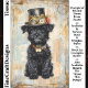 Cute Black Puppy In Steampunk Hat DL1R Decoupage Tissue Paper