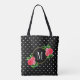 Cute Black Watercolor Red Flowers Dots Monogram Tote Bag