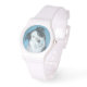 Badger is a very cute black and white border collie dog, he looks so cute because he’s offering his favourite little blue teddy bear toy to let his mum know he loves her. This collie dog protrait has a nice sky blue mottle background that brings this wrist watch design alive. The trendy white sporty style watch has a matching wrist strap and can be worn by anyone, but especially anyone who loves the border collie breed, they really are a very special working dog breed. This collie dog art wrist watch will make a wonderful gift for someone special who loves all kinds of dogs , but especially border collies with exceptionaly cute expressions, or perhaps you simply want to treat yourself to this original design white sporty watch. The original artwork for Badgers pet portrait is painted in soft pastel.