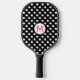 Cute Black White Polka Dots Pink Monogram Pickleball Paddle