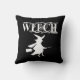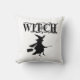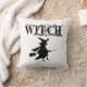 Cute Black Wicked Flying Witch Halloween Throw Pillow.