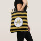 Cute Black Yellow Bee Stripes Name and Monogram Tote Bag