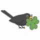An illustration of a cute kawaii cartoon blackbird with a green shamrock clover leaf on his beck for St. Patrick's Day. This adorable design is a gift idea for animal lovers, bird lovers and nature lovers. Ireland is one of the countries that celebrates St. Paddy's Day.