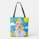 Another cute library bag by JessicaAmber! This personalised tote bag will be a great choice for your elementary-school-aged daughter when it's time to go back to school. You change the name of your student, AND you can recolour every element on the girl, from her hair to her skin to her clothes to the background. Preset colour scheme is a white girl with light blonde hair in a ponytail, and blue eyes. She is wearing a white school uniform shirt. She is on on a background of blue sky with sun and clouds and green grass. 🔵 Created 26 Dec 2022. For more custom kids gifts, check out my store https://www.zazzle.com/store/jessicaamberartist 🔵 For custom orders, email me at jessicaamberartist+custom@gmail.com