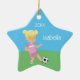 Personalise this cute soccer ornament for the soccer-loving girl in your life! This ornament features a blonde girl kicking a soccer ball on a green field with a blue sky. Also available in other colours for extra customisation.
