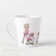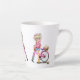 Cute Blonde Girl with Pink Bike and Cat in Flowers Latte Mug