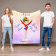 This personalised gymnastics fleece blanket is the perfect gift for the little gymnast in your life! Featuring a cute blonde gymnast with hazel eyes in a red and blue leotard, this design is sure to bring a smile to any gymnast's face. The blanket is soft, cosy, and perfect for snuggling up after a long day of practice or competition. The design also includes the words "Vault", "Bars", "Beam", and "Floor", representing the four main apparatus in women's artistic gymnastics. It's a thoughtful and unique gift that any young gymnast will cherish.