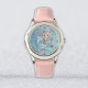 Blonde mermaid wrist watch for a girl with blue, pink, and gold colours. Personalised with the kid's name or any custom text. It features a cute dolphin, turtle, star, castle, and sea creatures with faux glitter scales on the background.