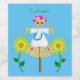 Cute Blonde Pigtails Scarecrow with big sunflowers, to personalise by changing to your name on any background colour