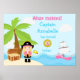 Cute Blonde Pirate Girl in Pink Birthday Poster