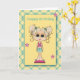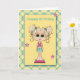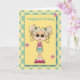 Send birthday wishes to a special birthday girl with this cute and trendy girl with big doe eyes and blonde pigtails on yellow polka dot background with yellow and turquoise plaid border. (Some graphics ©Trina Clark at digiwebstudio)