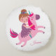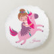 Cute Blondie Haired Girl Riding on a Unicorn Round Cushion