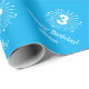 Cute blue 3rd Birthday wrapping paper for kids. Personalised wrapping paper for third Birthday. Fun design with name of child and fireworks. Customisable background colour. Available in matte and glossy.