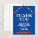Cute Blue and Orange Sports Basketball Birthday Thank You Postcard. Basketball themed thank you postcard for kids - girl and boy. The design has basketballs and bunting flags in orange and white colours. The background is blue. Personalise the postcard with your child`s name. You can also change the thank you text and message and write your own. Great for a boy or a girl who loves basketball and other sports.
