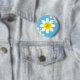 This adorable button features white flowers with a blue background and fancy lettering for personalising.