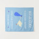 Cute Blue And White Text Stork And Rattles Tapestry