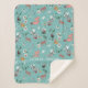 Cute blue animals sloth, zebra & birds nursery sherpa blanket