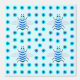 This awesome nursery wallpaper features a graphic image of a cute blue baby boy bee with black legs and beady eyes. He has a pale blue fuzzy body with bright blue stripes and cute blue antennae on his fuzzy head. His delicate little wings have a pale blue mottled pattern on them.